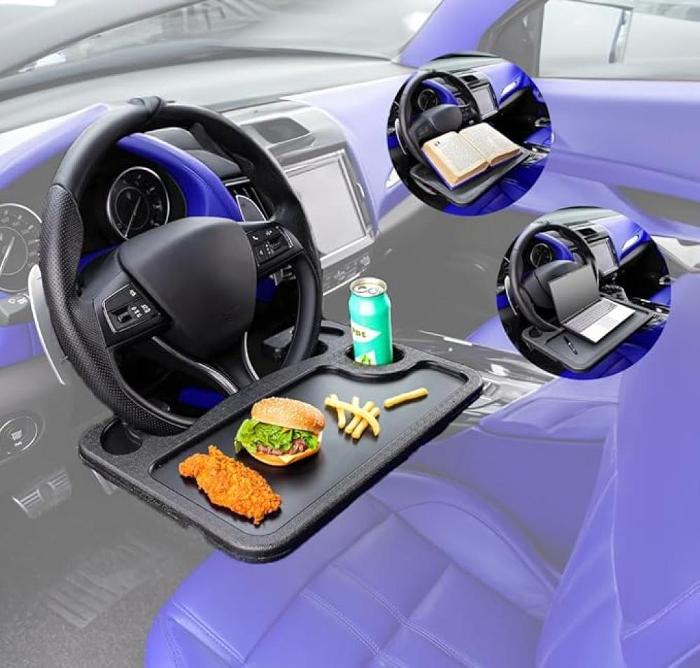طاولة للسيارة طاولة تثبت بعجلة قيادة السيارة متعددة الأغراض لتناول الطعام أو العمل ولتناول والتصفح واستخدام اللابتوب والقراءة والكتابة في تناسب جميع السيارات بني مستدير من موترك